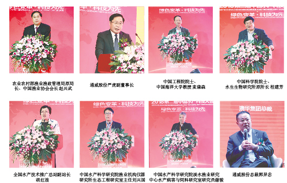 中國工程院院士、中國海洋大學教授麥康森,中國科學院院士、水生生物研究所原所長桂建芳,中國水產科學研究院漁業機械儀器研究所生態工程研究室主任劉興國等行業專家,分別圍繞科技創新引領水產飼料質量革命、新時代水產養殖模式變革等方面帶來精彩演講。江蘇中洋集團董事長錢曉明,丹麥拜歐瑪BioMar集團副總裁Henrik,英國BENCHMARK控股有限公司董事、比利時INVE英偉水產集團全球總裁Philippe Leger,通威自動化設備有限公司副總經理羅國強分別就生態養殖、智能化裝備開發、全球技術創新趨勢等緊貼技術創新和綠色發展話題進行了分享。