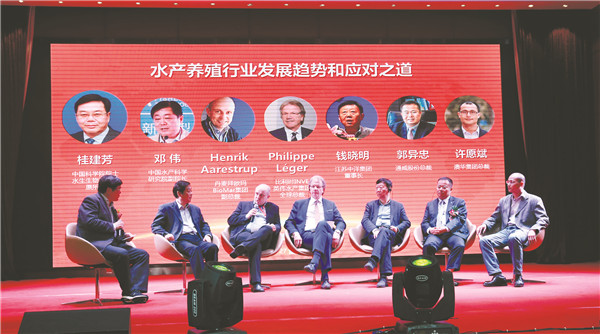在桂建芳院士主持的圓桌對話環節,中國水產科學研究院副院長鄧偉,丹麥拜歐瑪集團副總裁Henrik,英國BENCHMARK控股有限公司董事、比利時INVE英偉水產集團全球總裁Philippe Leger,江蘇中洋集團董事長錢曉明,通威股份郭異忠總裁,澳華集團總裁許愿斌等嘉賓,圍繞水產行業發展趨勢和應對之道展開“論劍”,頂級嘉賓陣容帶來的新思路、新觀點,引發現場熱烈掌聲。