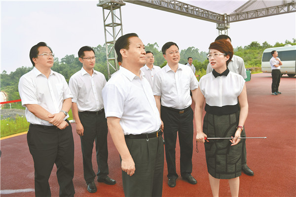 8月17日,四川省委書記彭清華蒞臨永祥股份樂山5萬噸高純晶硅及配套新能源項目建設現(xiàn)場調(diào)研。樂山市委書記彭琳,樂山市委常委、市政府常務副市長黃平林,五通橋區(qū)委書記張國清等陪同調(diào)研。通威股份禚玉嬌董事,通威股份董事、永祥股份董事長兼總經(jīng)理段雍熱情接待。