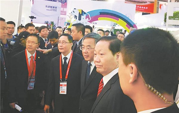 中共中央政治局委員、國(guó)務(wù)院副總理胡春華,四川省委書記彭清華等領(lǐng)導(dǎo)考察通威所在的“一帶一路”國(guó)際合作館