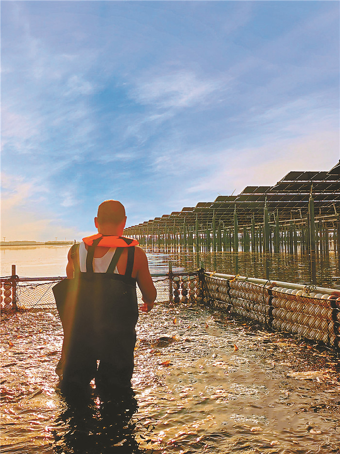 漁光物聯(lián)-漁業(yè)運營部養(yǎng)殖員史居正頂著烈日和熱潮,試用網(wǎng)箱給三標段精養(yǎng)區(qū)運魚苗