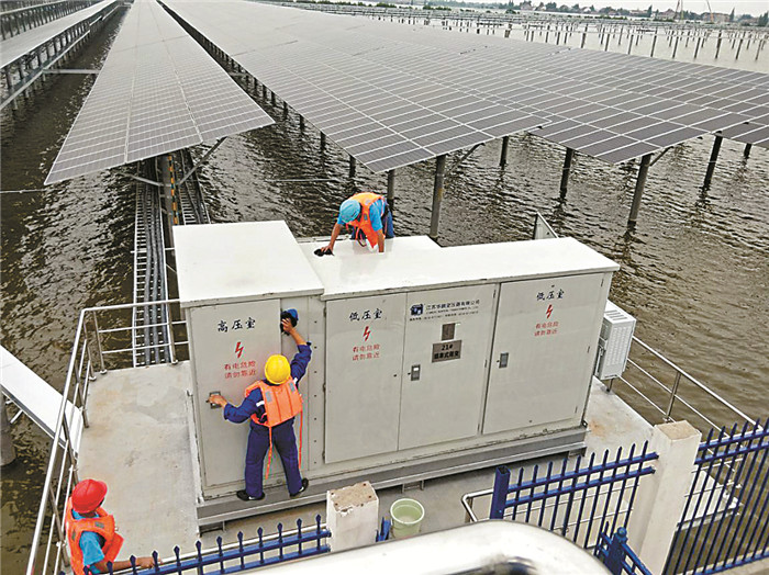 通威常德“漁光一體”項目工作人員夜以繼日加緊施工,保證項目按時并網(wǎng)