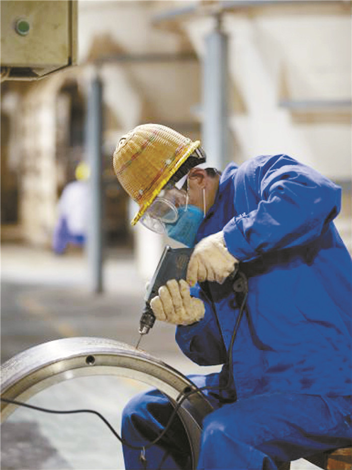 高明通威生產(chǎn)部制粒工孟偉仔細修復(fù)環(huán)模,將設(shè)備產(chǎn)能始終發(fā)揮到最佳狀態(tài)