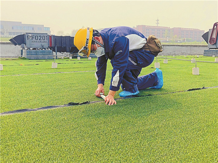 永祥新能源品管部技術(shù)員吳加勇打破固有功能的囿限,在執(zhí)行中轉(zhuǎn)四位,不斷嘗試,最終用小小的訂書釘定住了樓頂草坪,守住一片綠