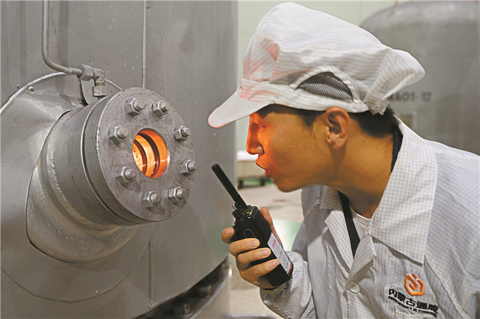 內(nèi)蒙古通威還原工段時刻仔細查看晶硅生長狀態(tài),并及時記錄和反饋,確保穩(wěn)定生產(chǎn)