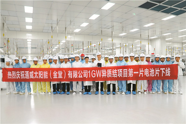 通威太陽能1GW異質(zhì)結(jié)電池項目第一片電池片下線