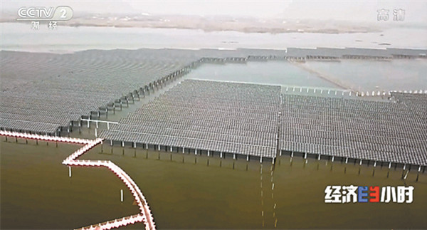 央視財經頻道《經濟半小時》播出通威泗洪“漁光一體”基地畫面
