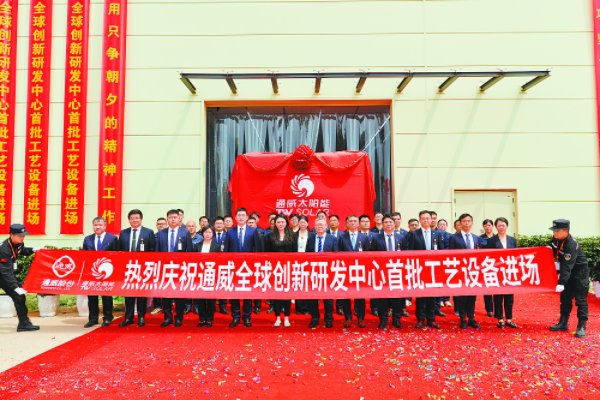 4月26日,通威全球創(chuàng)新研發(fā)中心首批工藝設(shè)備進(jìn)場(chǎng)儀式在通威太陽(yáng)能雙流公司隆重舉行。通威股份董事長(zhǎng)、CEO劉舒琪出席并講話,通威股份光伏首席技術(shù)官邢國(guó)強(qiáng)博士等出席,通威股份光伏技術(shù)部核心骨干代表,通威太陽(yáng)能管理團(tuán)隊(duì)代表共同見證了這一重要時(shí)刻。