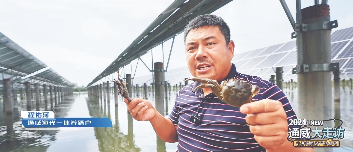 作為養蟹大戶,程佑河與水產養殖打了30多年的交道,熟稔養蟹的每個環節,被當地人稱為養蟹的一把好手。從龍袍“漁光一體”基地項目開始,他就積極參與,并跟隨通威水產專家進行大閘蟹試養,并總結出了“漁光種好草,好草凈好水,好水養好蟹”的“蟹光一體”養殖經驗。