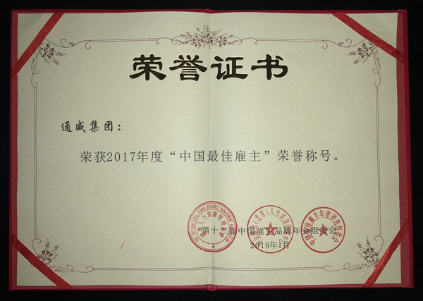 論壇圍繞“人才大數(shù)據(jù)與雇主品牌”的主題設(shè)置了多場主題演講和尖峰對話,并現(xiàn)場頒發(fā)了“2017中國最佳雇主”、“2017中國最具社會責(zé)任企業(yè)家”等中國雇主品牌年度大獎。通威集團因多年來高度重視人力資源管理創(chuàng)新,注重員工發(fā)展,尊重人才、善用人才,企業(yè)文化建設(shè)富有成效,在行業(yè)獨樹一幟,具有良好的雇主品牌形象,在企業(yè)的長遠戰(zhàn)略規(guī)劃、管理層的優(yōu)秀領(lǐng)導(dǎo)能力及企業(yè)人力資源管理、雇主品牌管理等多個方面獲得中國人力資源領(lǐng)域?qū)I(yè)人士的高度認可,榮獲“2017 中國最佳雇主”大獎;十一屆全國政協(xié)常委、通威集團董事局劉漢元主席多年來持續(xù)不斷創(chuàng)新創(chuàng)造新的人力資源管理理論、方法和技術(shù),對企業(yè)整體發(fā)展、戰(zhàn)略制定等發(fā)揮引領(lǐng)導(dǎo)向作用,為企業(yè)樹立良好的雇主品牌形象、提升員工滿意度、改進人力資源管理工作做出了卓越貢獻,榮獲“2017中國最具社會責(zé)任企業(yè)家”大獎。通威集團北京代表處主任李競代表集團參加此次年會并領(lǐng)取獎項。