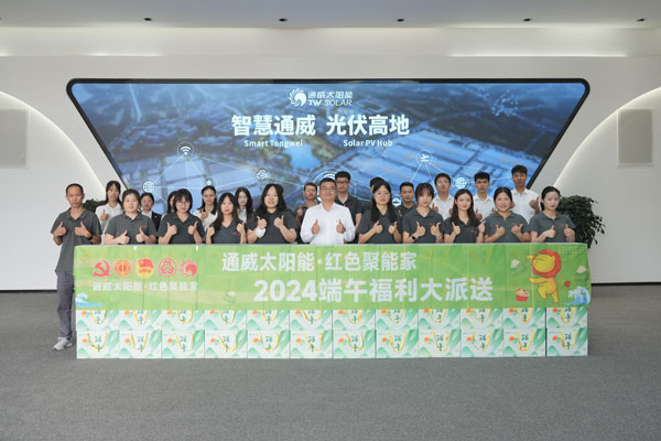 榴裙萱黛增顏色,艾酒蒲漿記歲年。在端午佳節(jié)來(lái)臨之際,為弘揚(yáng)傳統(tǒng)文化,感謝全體員工為公司發(fā)展付出的辛勤努力,6月3日至5日,通威太陽(yáng)能紅色聚能家在各公司有序開(kāi)展端午福利大派送活動(dòng),為廣大職工送去了滿滿的關(guān)愛(ài)和濃濃的節(jié)日祝福。