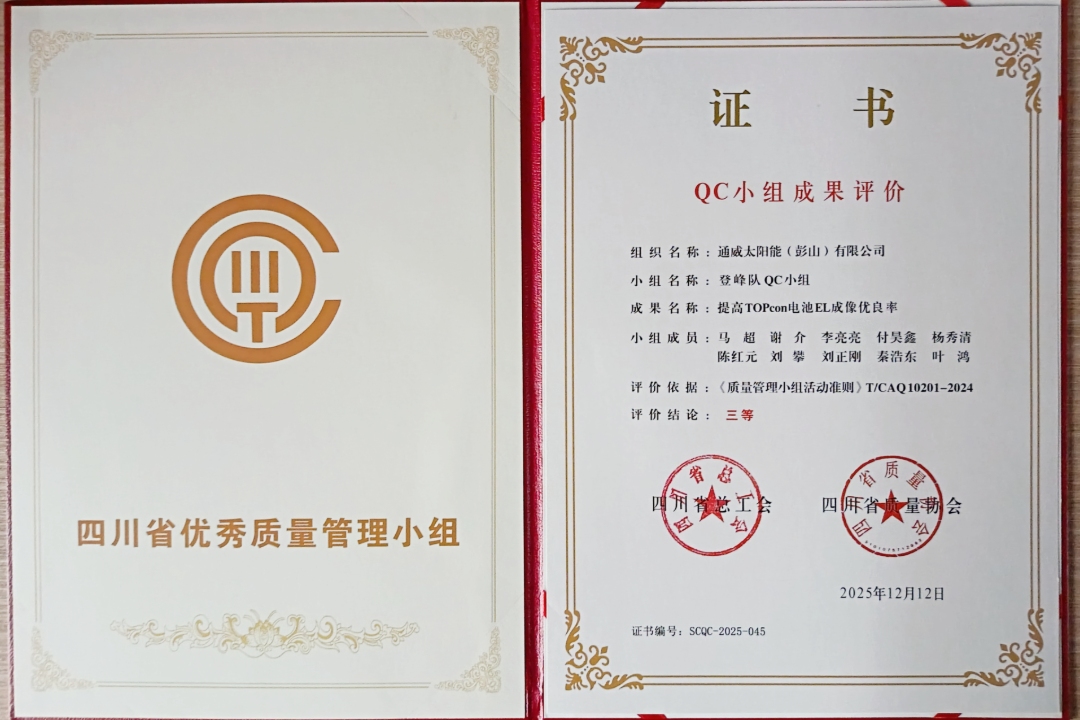 品質(zhì)鑄就信賴:通威太陽能(彭山)有限公司連獲三項(xiàng)質(zhì)量榮譽(yù)