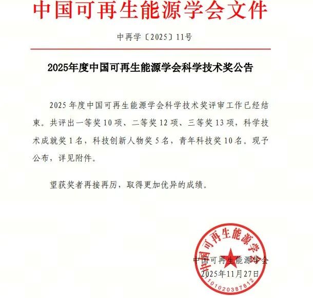 通威異質結技術榮獲2025年度中國可再生能源學會科學技術獎一等獎