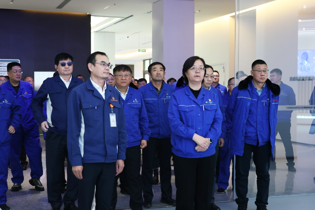 包頭市委常委、包頭鋼鐵(集團)有限責任公司黨委書記、董事長孟繁英一行蒞臨通威硅能源(內蒙古)調研