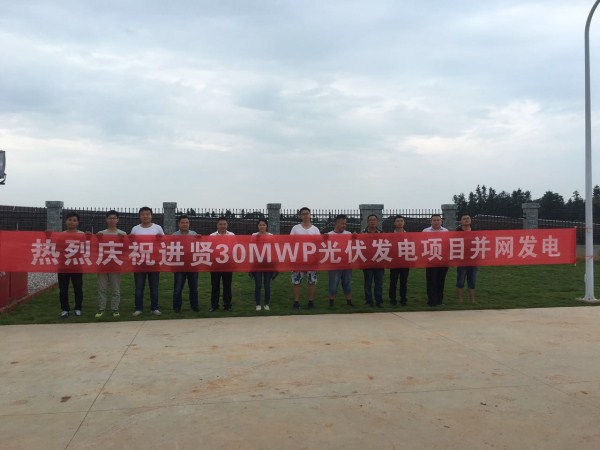 項目人員齊賀進賢縣下埠集30MWp光伏地面電站并網(wǎng)成功