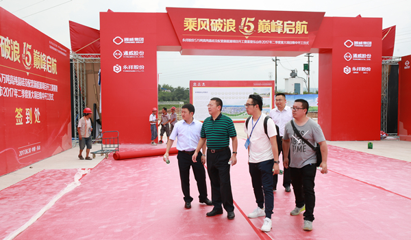 為確保盛會的成功舉行,6月28日一早,根據集團劉漢元主席、禚玉嬌總裁指示,通威集團副總裁黃其剛趕赴樂山,與通威股份董事、永祥股份董事長兼總經理段雍第一時間查看慶典籌備情況,先后檢查了活動場地,詳細了解了嘉賓指引、舞臺方位、安保布置、交通路線等各方面工作規劃,并現場一一確定執行細節,要求執行到位。目前,現場工作人員正緊張進行最后籌備工作,全力以赴為本次盛大活動成功舉行保駕護航。