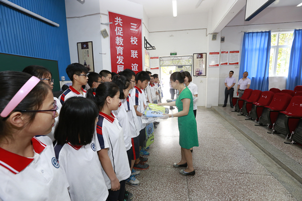 李主席代表通威集團向優秀學生代表贈送節日禮物