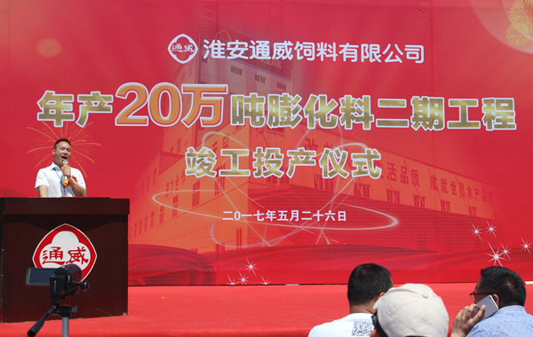 5月26日,淮安通威人潮涌動(dòng)、車水馬龍、鞭炮齊響、鑼鼓齊鳴,熱鬧非凡。當(dāng)天,淮安通威歷經(jīng)六個(gè)多月、投資近兩千萬(wàn)的膨化料二期工程項(xiàng)目正式竣工投產(chǎn)。通威股份華東戰(zhàn)區(qū)總裁助理萬(wàn)學(xué)剛,淮安通威總經(jīng)理丁永國(guó),淮安市漣水縣保灘鎮(zhèn)人大主席付建文、工業(yè)站站長(zhǎng)李峰、工業(yè)辦主任丁一等應(yīng)邀出席。淮安通威經(jīng)銷商、養(yǎng)殖戶及員工代表等200余人參加本次投產(chǎn)儀式。