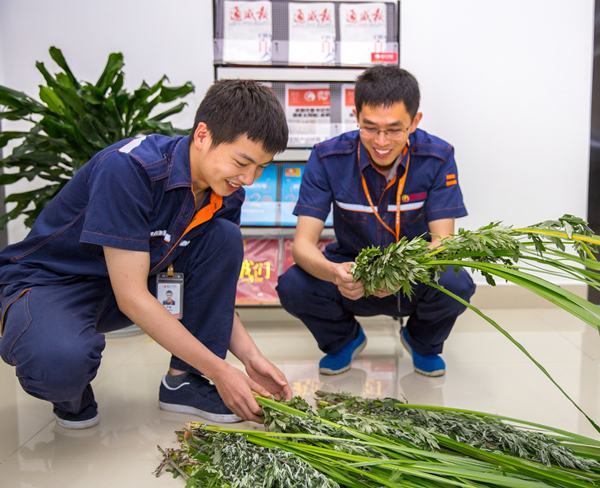 員工正在準(zhǔn)備菖蒲、艾草