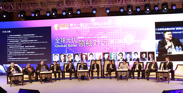 此次領袖對話分為光伏全球市場走勢、產業發展趨勢、應用市場趨勢三個單元,行業領袖們圍繞著光伏企業如何拓展海外市場、光伏平價上網還有多遠、光伏領跑者計劃、戶用光伏的發展前景等行業熱點話題展開對話。