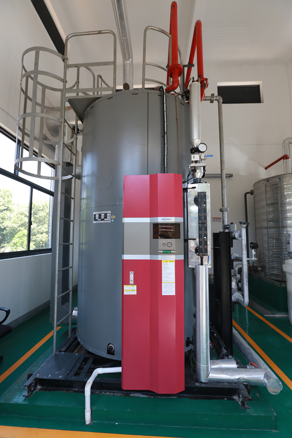在距“科技城堡”幾百米外,還有一個(gè)默默堅(jiān)守崗位的“造血系統(tǒng)”————日本三浦蒸汽鍋爐。據(jù)介紹,該款鍋爐實(shí)現(xiàn)產(chǎn)氣時(shí)間從傳統(tǒng)的30分鐘縮短為5分鐘,極大縮短了整個(gè)流程的生產(chǎn)時(shí)間;同時(shí),鍋爐占地面積僅為傳統(tǒng)鍋爐的四分之一,占地面積大大減小。