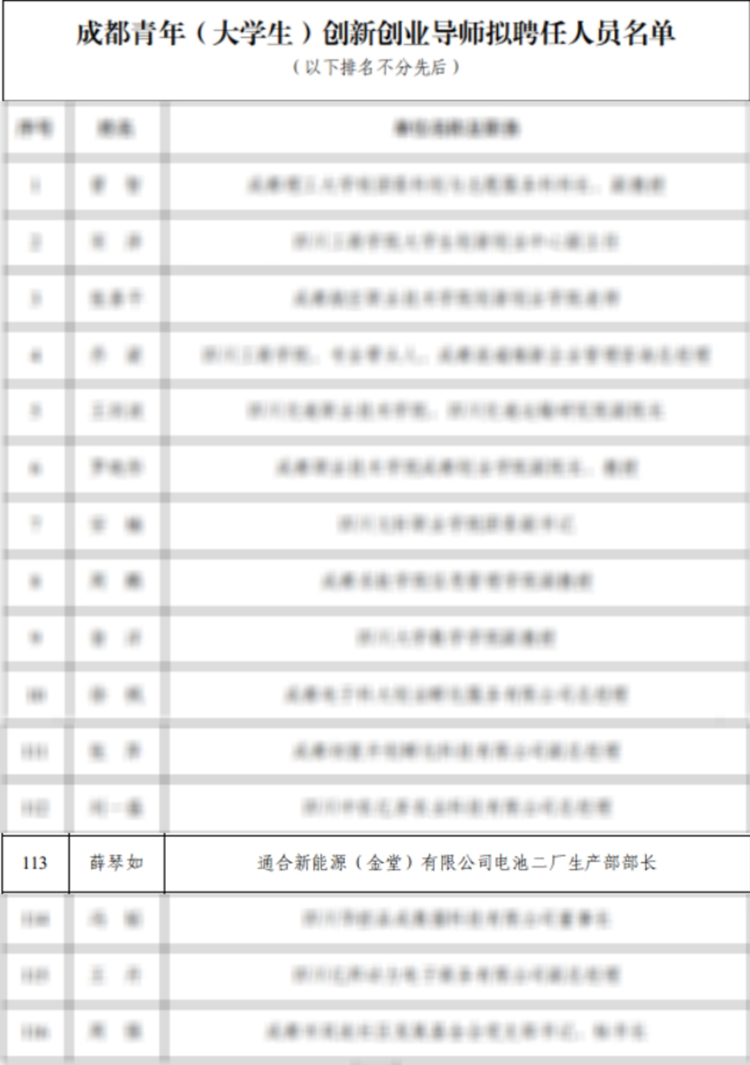 通合新能源(金堂)有限公司工會副主席薛琴如獲聘2025 年成都青年(大學生)創新創業導師
