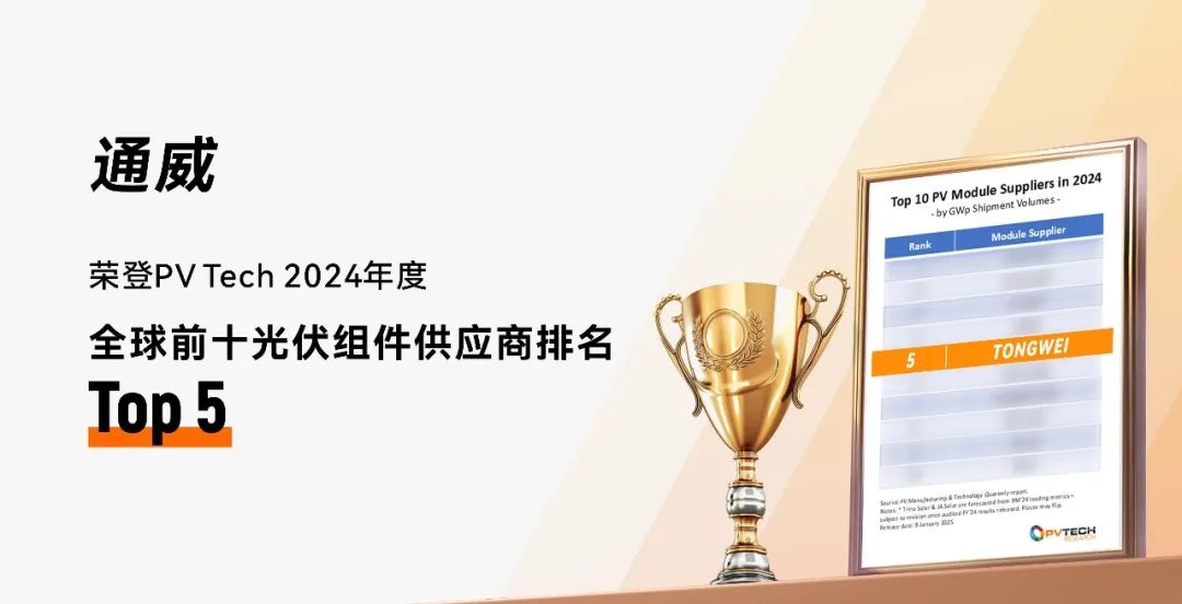 PV Tech 2024全球前十光伏組件供應商排名出爐!通威榮登Top5!