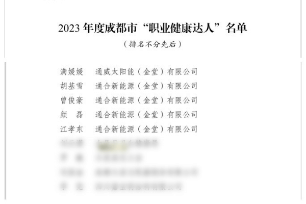 通威太陽能多名員工代表榮獲2023年度成都市“職業(yè)健康達(dá)人”榮譽(yù)稱號(hào)