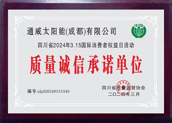 通威太陽(yáng)能成都公司榮獲2024年四川省“質(zhì)量誠(chéng)信承諾單位”稱號(hào)