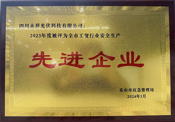 永祥光伏科技獲評2023年度樂山市工貿行業安全生產先進企業
