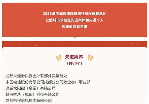 通威太陽能金堂基地榮獲“2023年成都市建設(shè)踐行新發(fā)展理念的公園城市示范區(qū)先進(jìn)集體”
