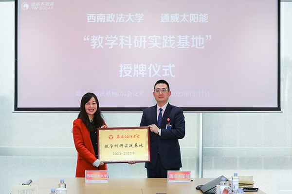 西南政法大學(xué)與通威太陽(yáng)能“教學(xué)科研實(shí)踐基地”簽約授牌儀式順利舉行