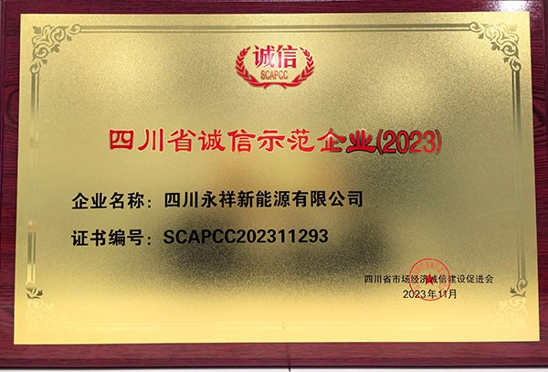 永祥新能源獲2023年“四川省誠(chéng)信示范企業(yè)”榮譽(yù)