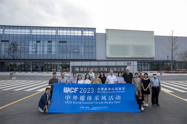 2023全球濱海論壇會議中外媒體蒞臨通威太陽能(組件)鹽城基地參觀