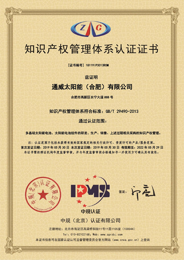 通威太陽能順利通過知識產權貫標認證