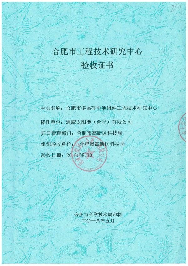 通威太陽能合肥公司順利通過市級工程技術研究中心驗收