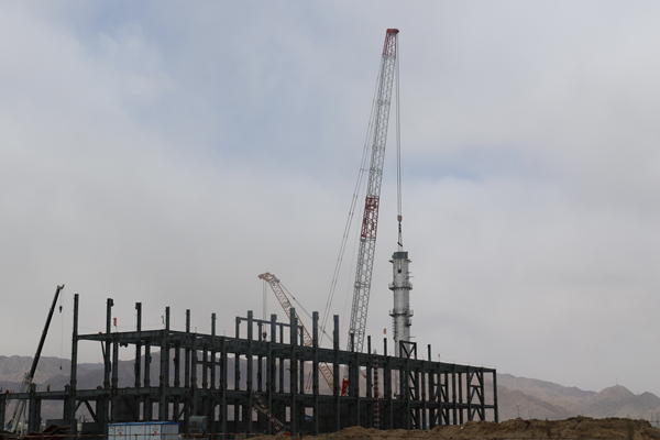 永祥股份包頭5萬噸高純晶硅及配套新能源項目(一期)首節精餾塔順利完成吊裝