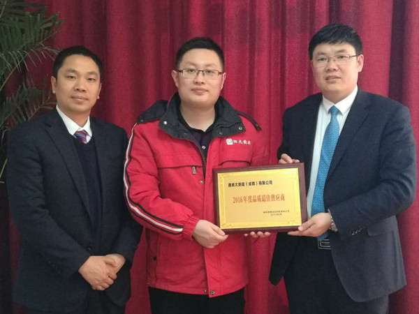 通威太陽能公司榮獲錦州錦懋光伏科技有限公司“品質最佳供應商”榮譽稱號