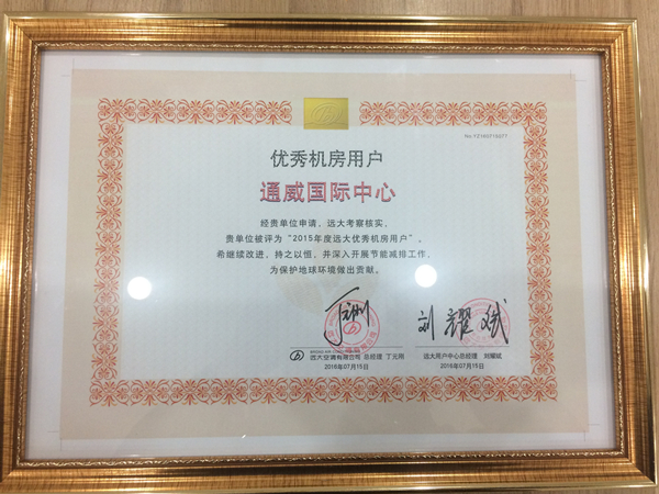 通威國際中心喜獲“年度遠大優秀機房用戶”榮譽稱號