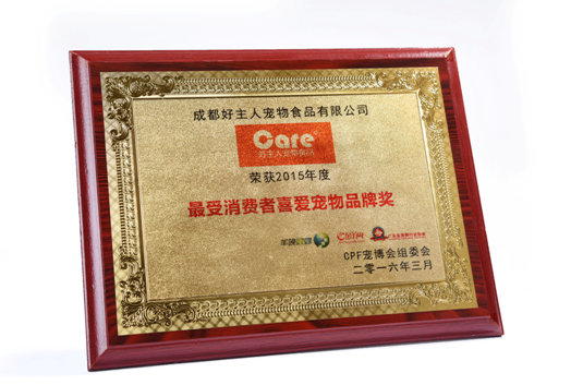 “好主人”榮獲“2015年度最受消費者喜愛寵物品牌獎”