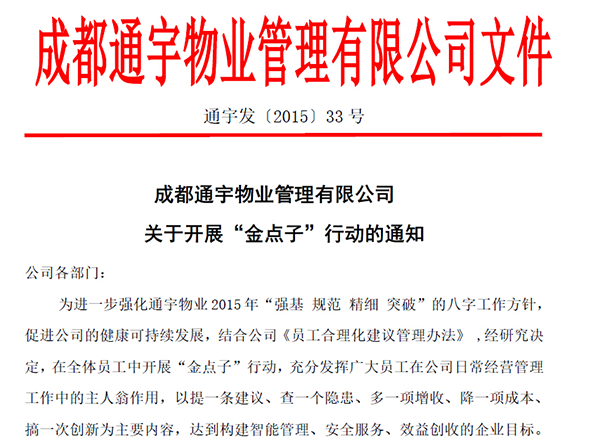 通宇物業(yè)啟動“金點子”合理化建議征集活動