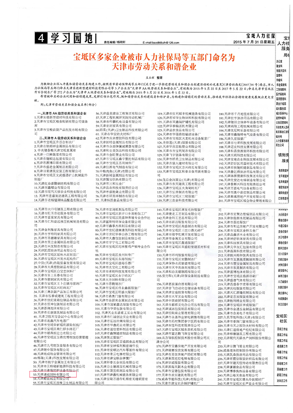 天津通威榮獲“A級勞動關系和諧企業(yè)”稱號