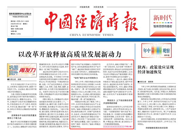 中國經(jīng)濟時報:頭版頭條聚焦通威太陽能外貿(mào)出口優(yōu)異表現(xiàn)