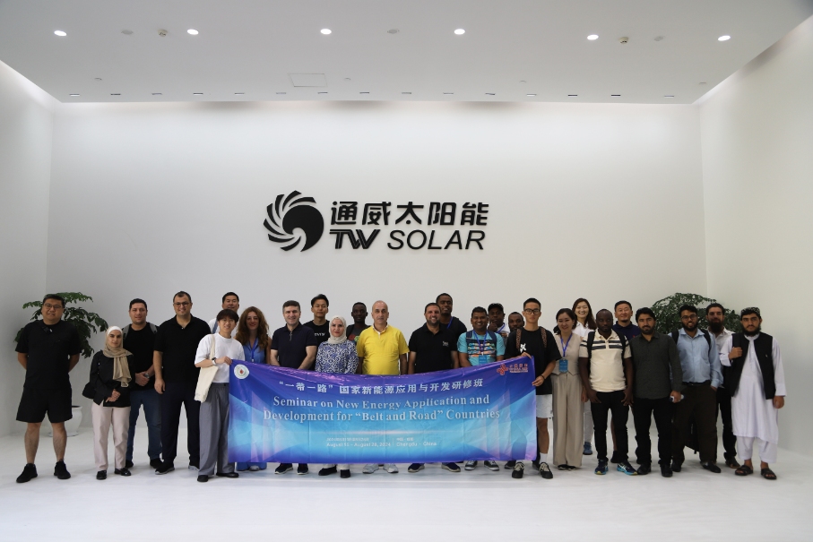 8月21日,由來(lái)自塞浦路斯、約旦、阿富汗、伊拉克、斐濟(jì)、蒙古六個(gè)國(guó)家的學(xué)員組成的“一帶一路”國(guó)家新能源應(yīng)用與開(kāi)發(fā)研修班一行到訪(fǎng)通威太陽(yáng)能(金堂)有限公司參觀交流,金堂公司相關(guān)負(fù)責(zé)人熱情接待。