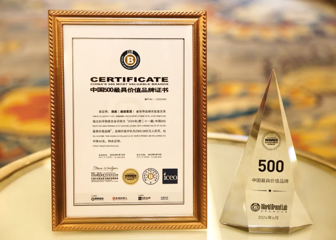 6月19日,在世界品牌實驗室發布的2024年《中國500最具價值品牌》榜單中,通威品牌價值再創新高,達到2305.59億元,繼續蟬聯全球水產和光伏兩大行業第一。通威品牌價值從2004年至今,增長超過100倍,不斷刷新歷史紀錄,成為中國品牌崛起的典型案例。