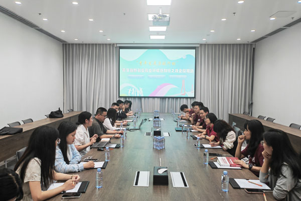 在通合公司,實踐隊的同學們首先乘車參觀了Q1、S1、S2車間,并走訪了黨群服務中心,對公司的成長歷程、企業文化、產品信息、產能規模以及群團組織建設有了初步的了解。在隨后的座談會上,公司人力資源部詳細介紹了公司概況、人才培養機制,并有現場工作人員分享了自己的就業經歷。同學們積極發言,交流了他們在求職過程中遇到的困難和困惑,以及此次參觀后的個人思考和體會。