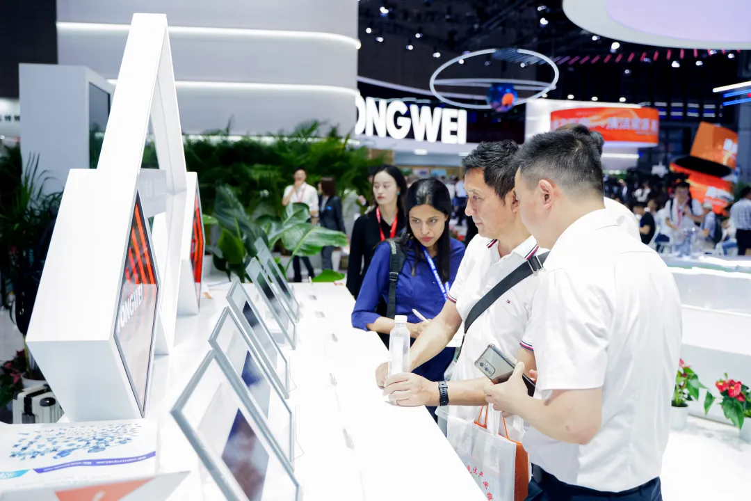 在上游高純晶硅環節,通威展出了P型和N型等高效單晶硅片,依托自主研發的“永祥法”生產工藝,產品純度達到11個9,目前“永祥法”已迭代至第八代,并儲備至第九代,電子級多晶硅批量出口海外,實現高純晶硅“中國智造”;中游高效電池環節,除展示TNC-G12R、TNC-G12、TNC-M10高效電池系列產品外,THC-G12-THL、THC-G12-銀包銅、TBC-M10三款新產品、新技術首次亮相;高效組件環節,備受關注的通威TNC-G12/G12R系列組件集中展示;在產業鏈終端環節,通威“漁光一體”發展模式,實現一、二、三產業融合發展,打造契合新漁業、新能源、新農村建設的“通威方案”。