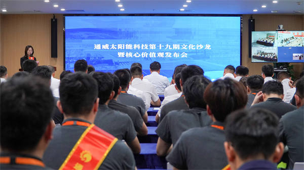 宣貫環(huán)節(jié),光伏學(xué)習(xí)中心進(jìn)行企業(yè)文化主題月工作總結(jié)及核心價(jià)值觀發(fā)布詮釋。企業(yè)文化是企業(yè)形成核心競(jìng)爭(zhēng)力的根本力量,是企業(yè)實(shí)現(xiàn)持續(xù)發(fā)展的動(dòng)力源泉。價(jià)值觀是企業(yè)在經(jīng)營(yíng)過(guò)程中所遵循的基本原則和價(jià)值取向,也是全體員工必須信奉和踐行的行為準(zhǔn)則的底層邏輯。秉持著“安全第一、誠(chéng)信為本、客戶至上、共贏共創(chuàng)”,通威太陽(yáng)能科技上下內(nèi)聚合力、外樹(shù)形象,將充分發(fā)揮價(jià)值觀在促進(jìn)企業(yè)高質(zhì)量發(fā)展中的積極作用。