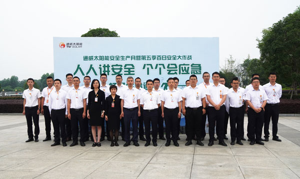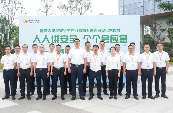 為深入貫徹習近平總書記關于安全生產重要論述和重要指示批示精神,積極響應全國第23個安全生產月活動,6月3日,通威太陽能正式啟動2024年安全生產月暨第五季百日安全大作戰活動,通威太陽能總經理周華,副總經理宋梟、王耀頤,通威股份光伏技術部光伏研究院院長蔣方丹及各公司中高管團隊出席儀式,共同啟動本次活動。