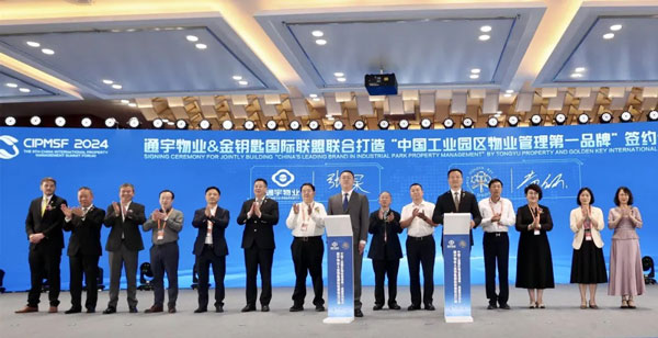 在與會嘉賓的見證下,通宇物業與金鑰匙國際聯盟簽訂聯合打造“中國工業園區物業管理第一品牌”合作協議。繼去年通宇物業獲金鑰匙國際聯盟授牌授勛授徽后,雙方再次強強聯合,旨在通過持續升級專業化、標準化、精細化的服務體系,創造高品質的服務體驗,助推工業園區傳統物業向智能物業的全面轉型升級。